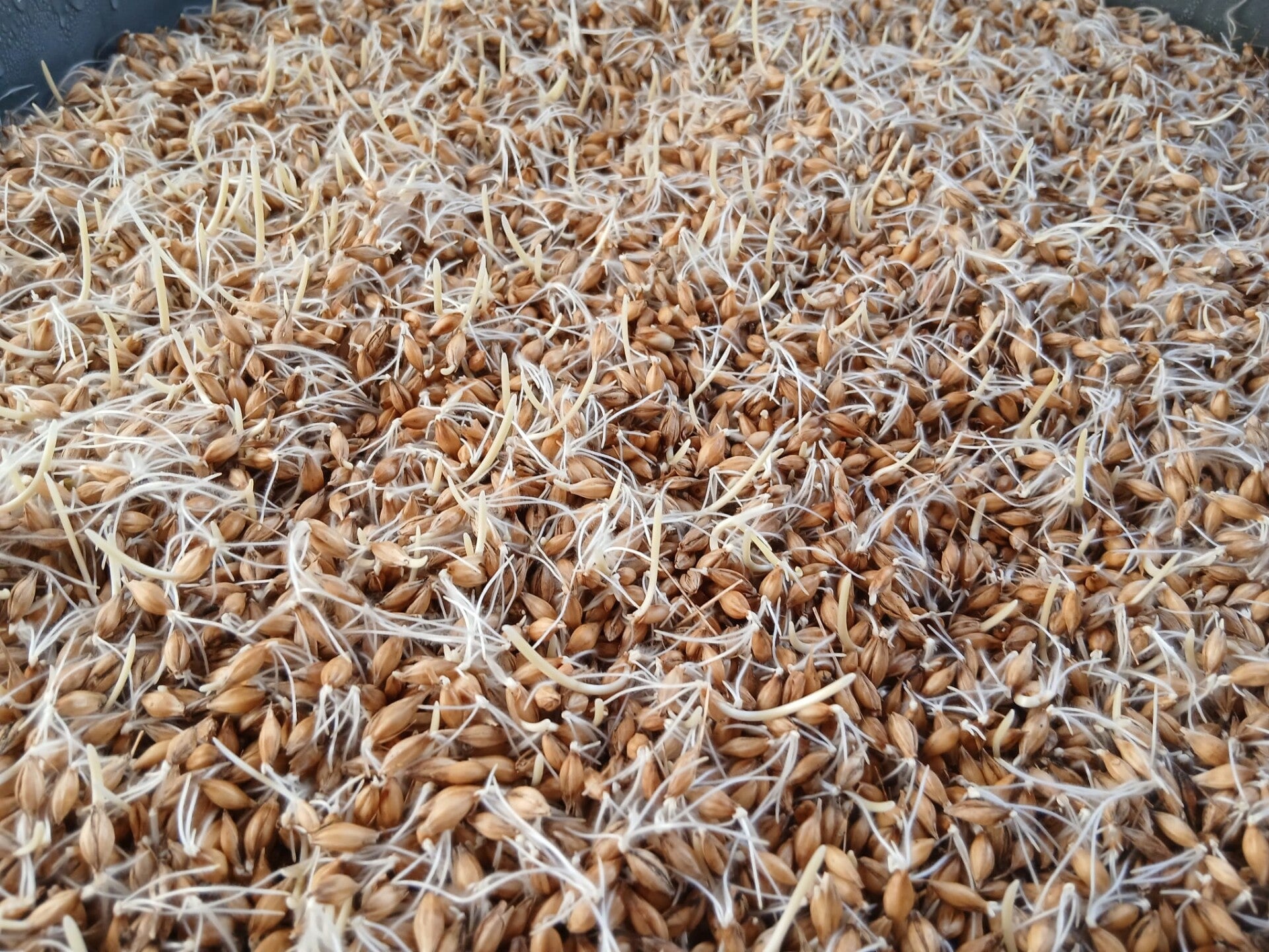 Hiernaast zie je een foto van gekiemde zaden. Dit krijgen onze varkens van de vleespakketten dagelijks naast de geselecteerde brokken te eten. Naast de gekiemde zaden krijgen ze ook gerst-klaver en gerst-tarwe wat we geproduceerd hebben op onze eigen landbouwgrond. Al deze producten wisselen we per dag af. De varkens vinden het naast de geselecteerde brokken ook enorm lekker! Onze runderen kunnen gewoon grazen op ons kruidenrijkgrasland. Zij grazen en selecteren zelf wat ze graag willen hebben en lekker vinden!